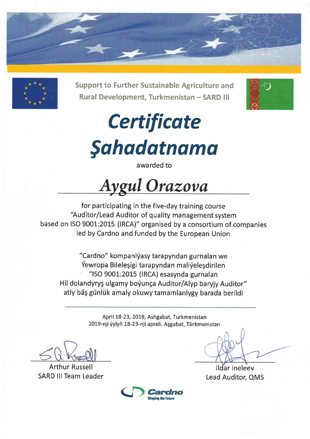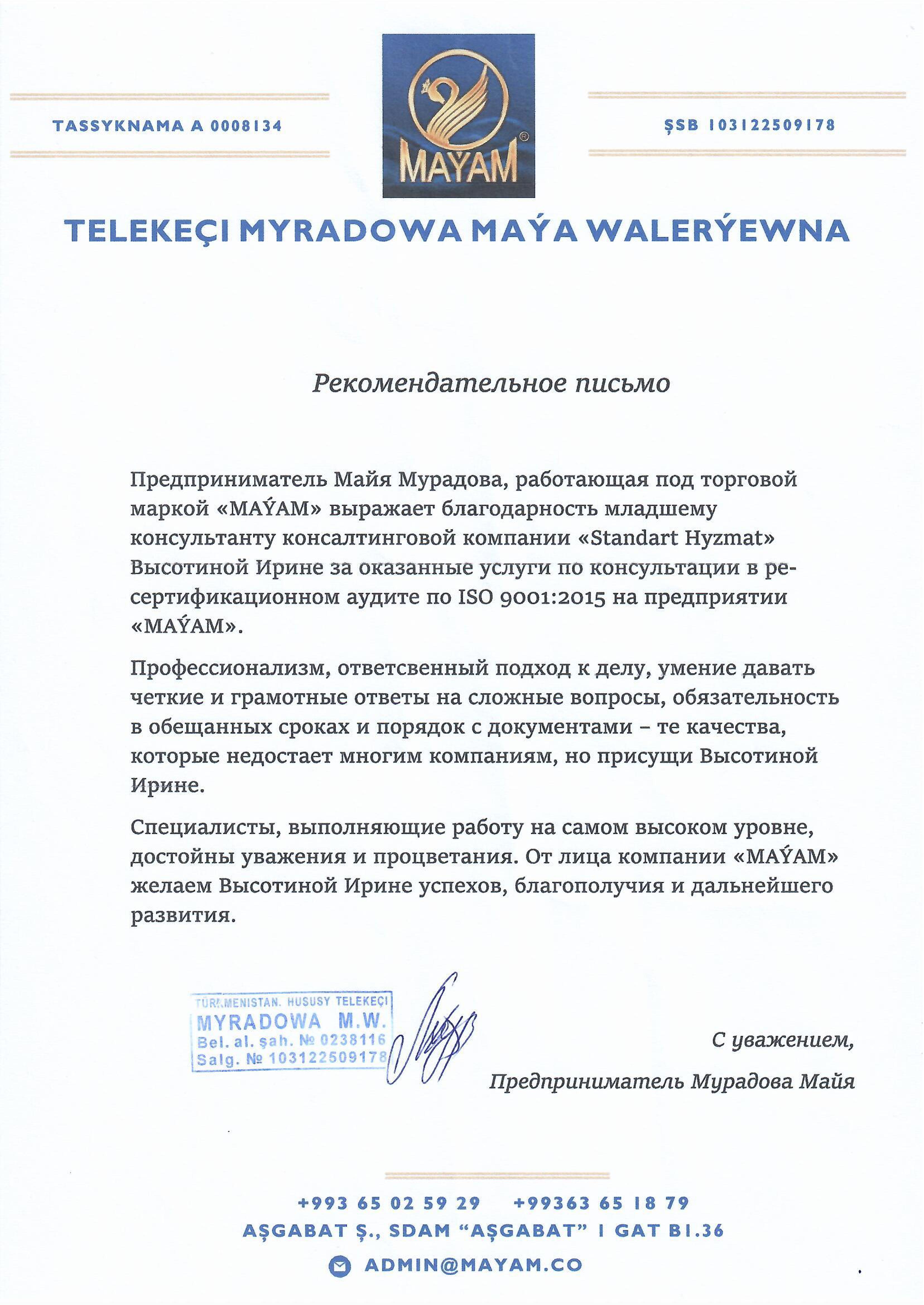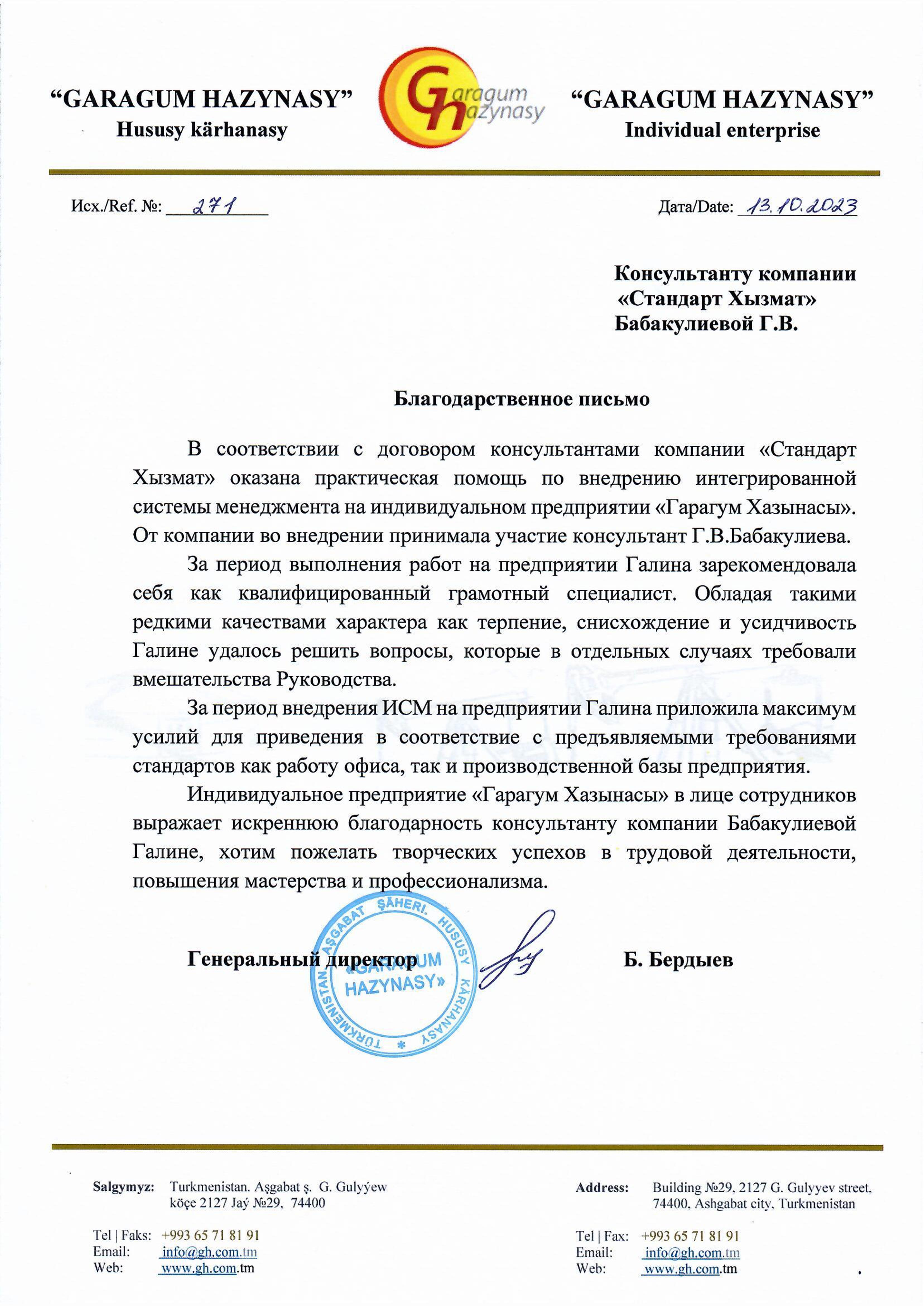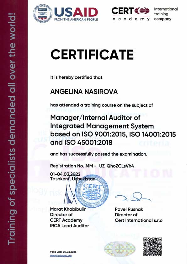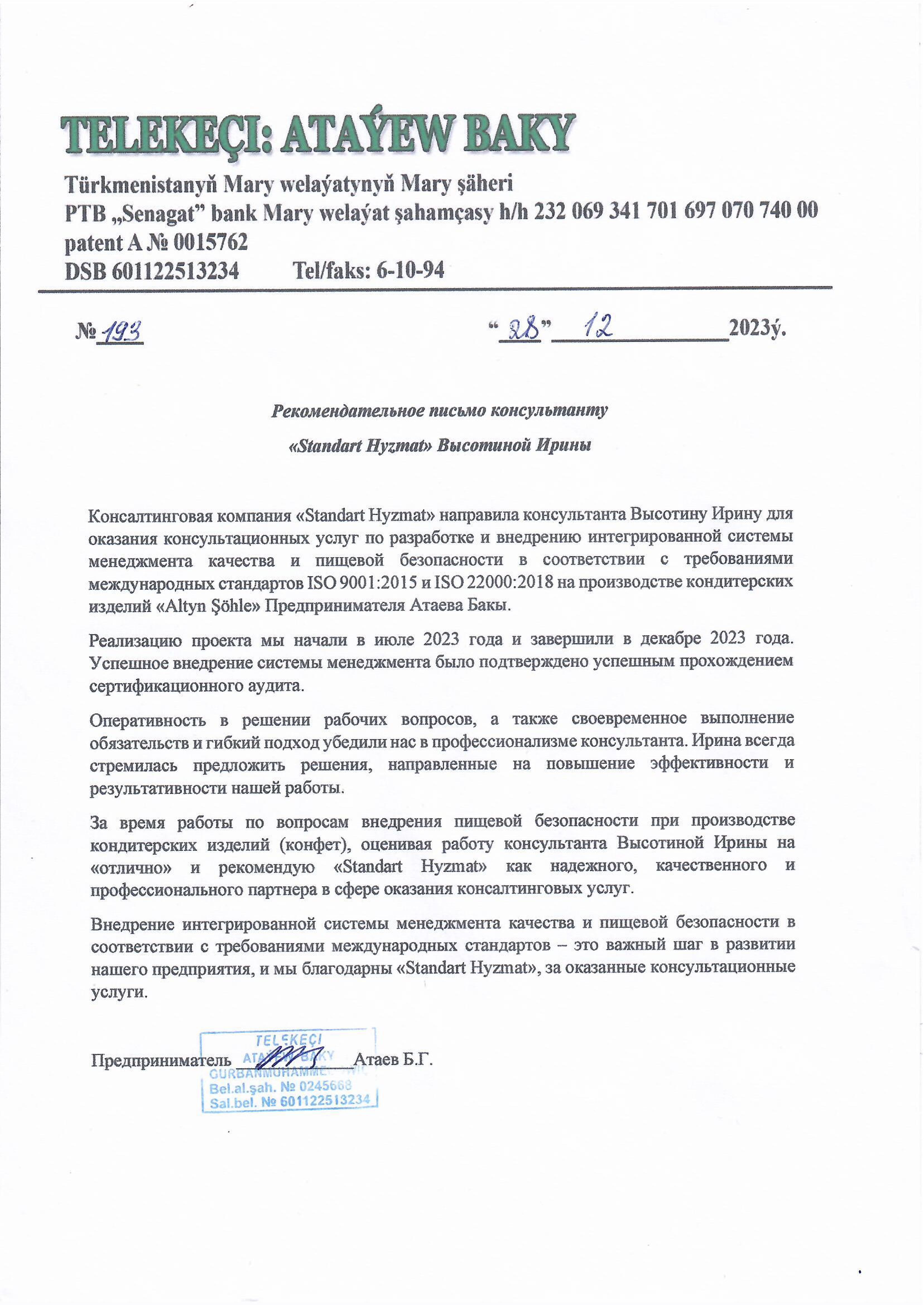 “Dowamly Hyzmat” – это команда сертифицированных специалистов в различных отраслях деятельности, оказывающия услуги по разработке и внедрению систем менеджмента в соответствии с международными стандартами. Свою деятельность “Dowamly Hyzmat” начала с 2016 года и на сегодняшний день имеет в своём активе не один десяток успешно завершённых проектов.