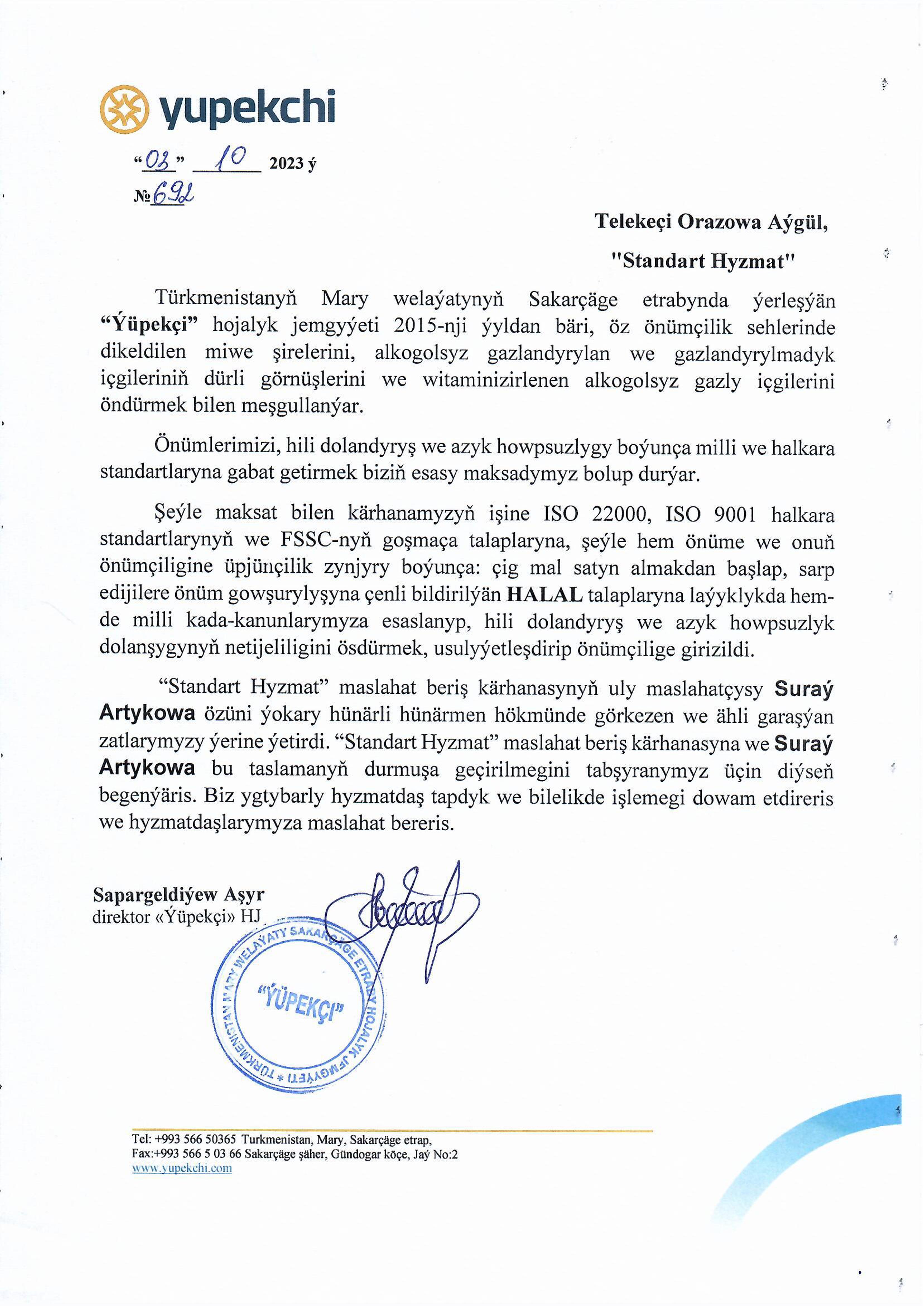 Для соответствия заявленной миссии и достижения стратегических целей, руководство “Dowamly Hyzmat” берёт на себя следующие обязательства: